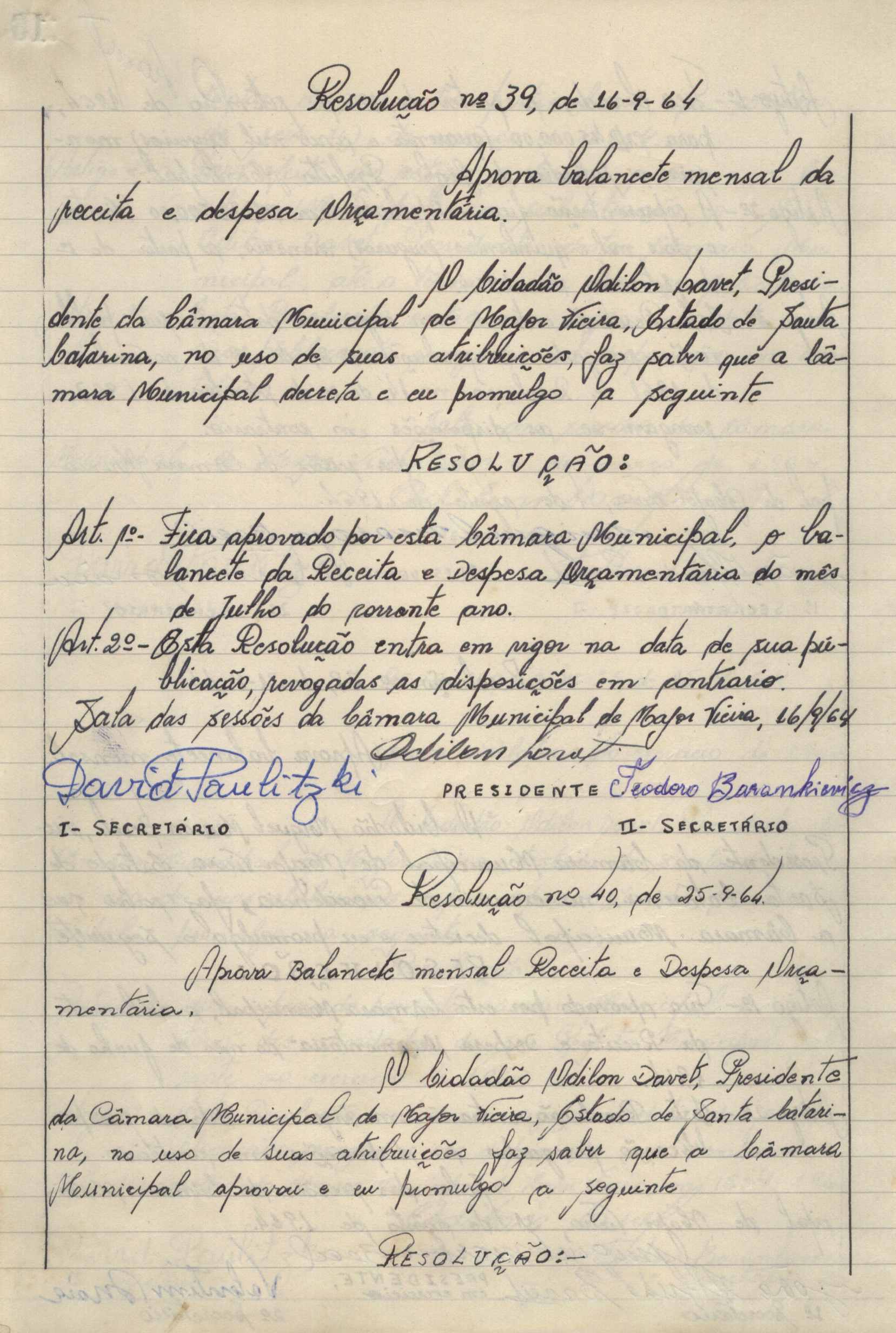 RES 39/1964 - RESOLUÇÃO PROMULGADA Etiqueta Individual