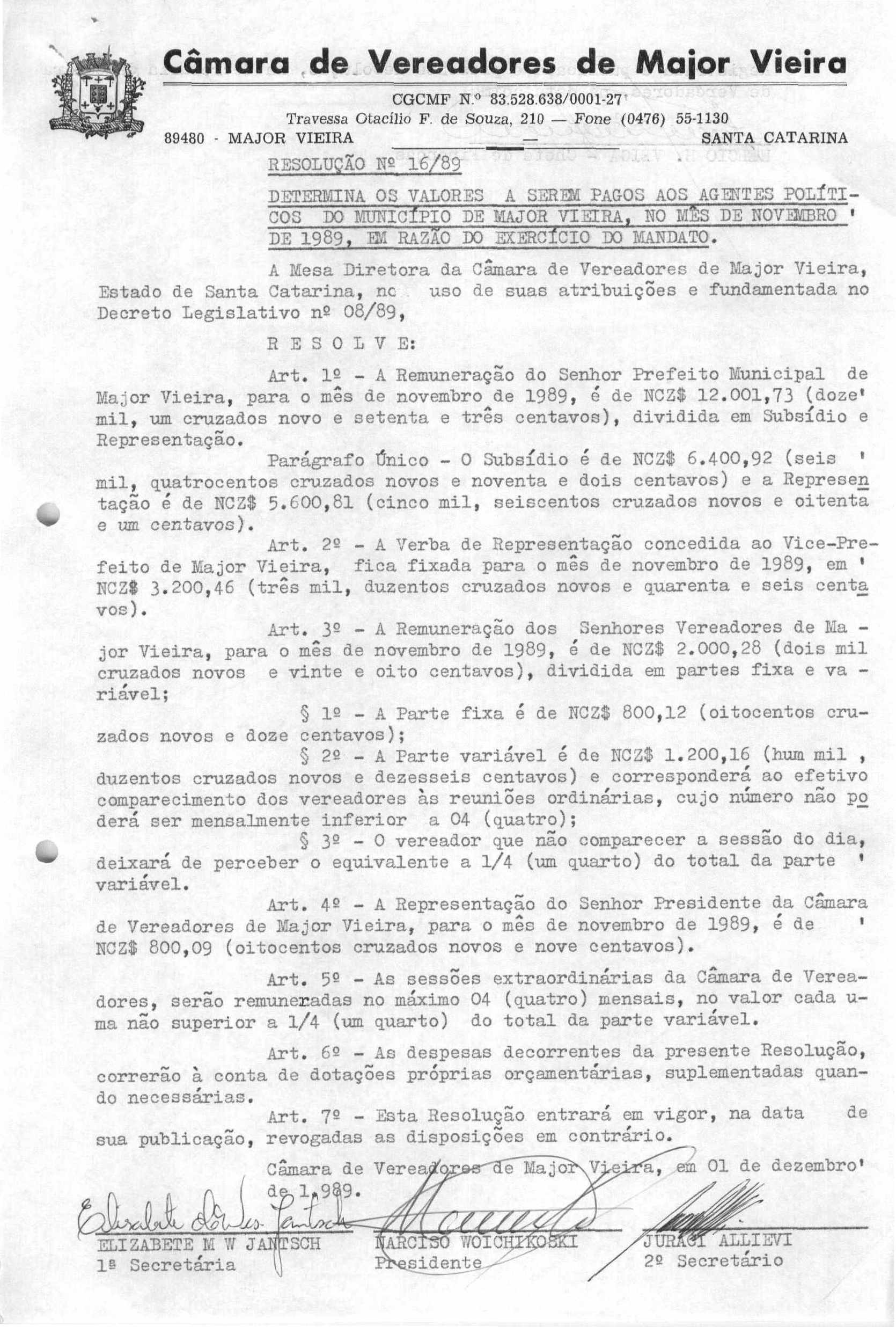RES 16/1989 - RESOLUÇÃO PROMULGADA