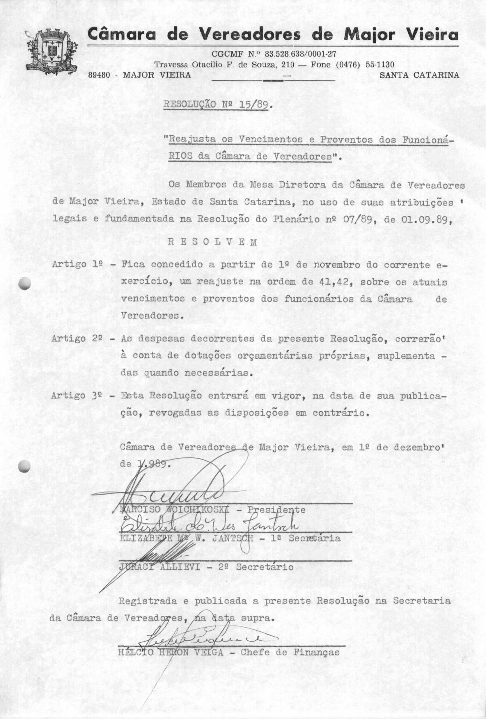 RES 15/1989 - RESOLUÇÃO PROMULGADA