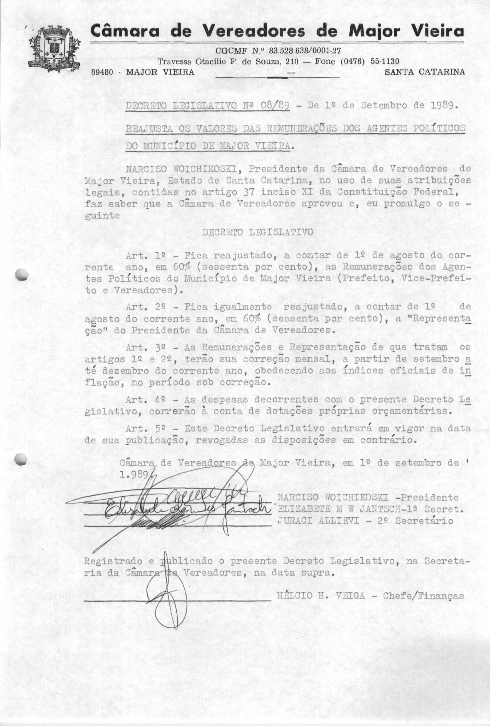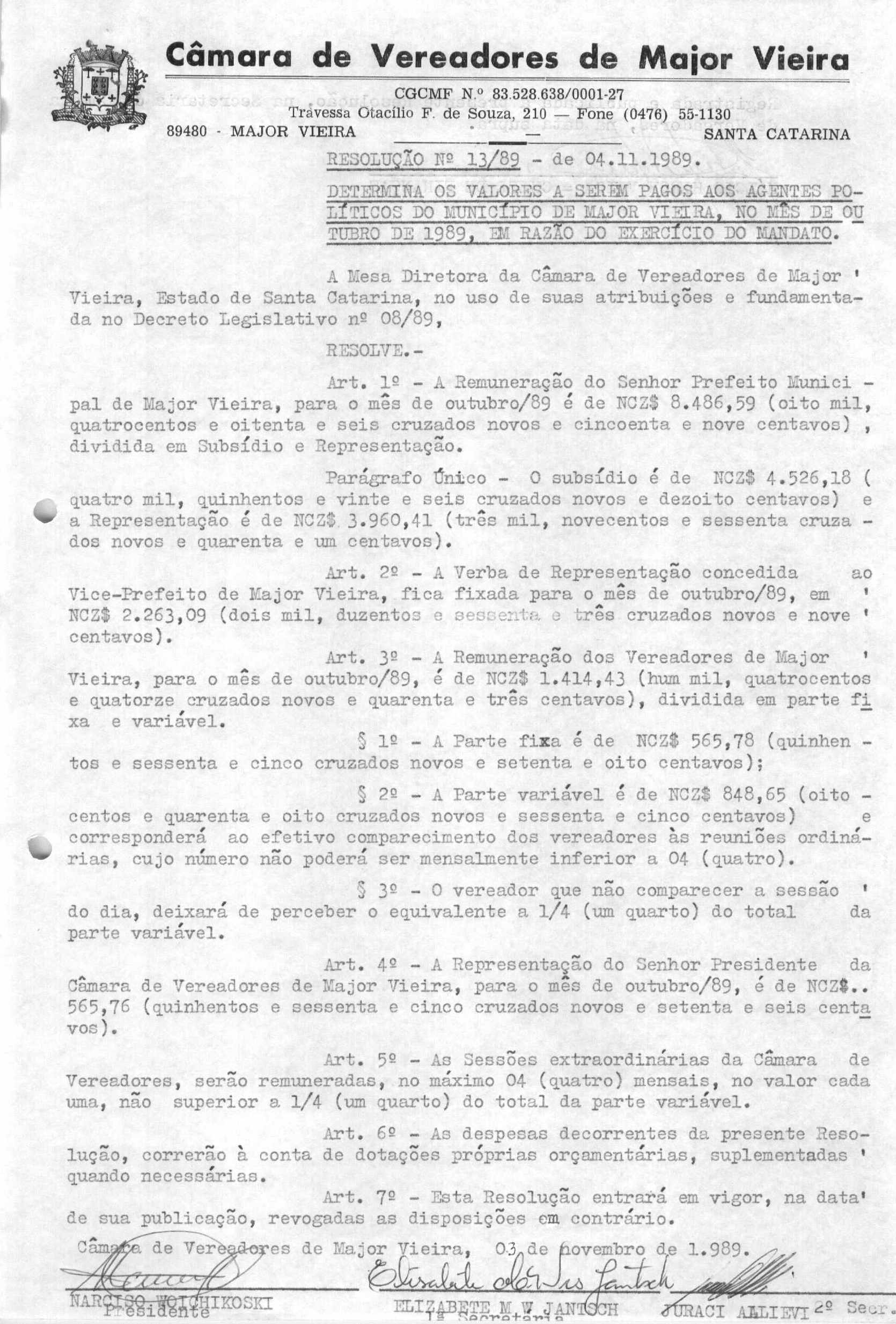 Ementa: DETERMINA OS VALORES A SEREM PAGOS AOS AGENTES POLÍTICOS, NO MÊS DE OUTUBRO DE 1989, EM RAZÃO DO EXERCÍCIO DO MANDATO.