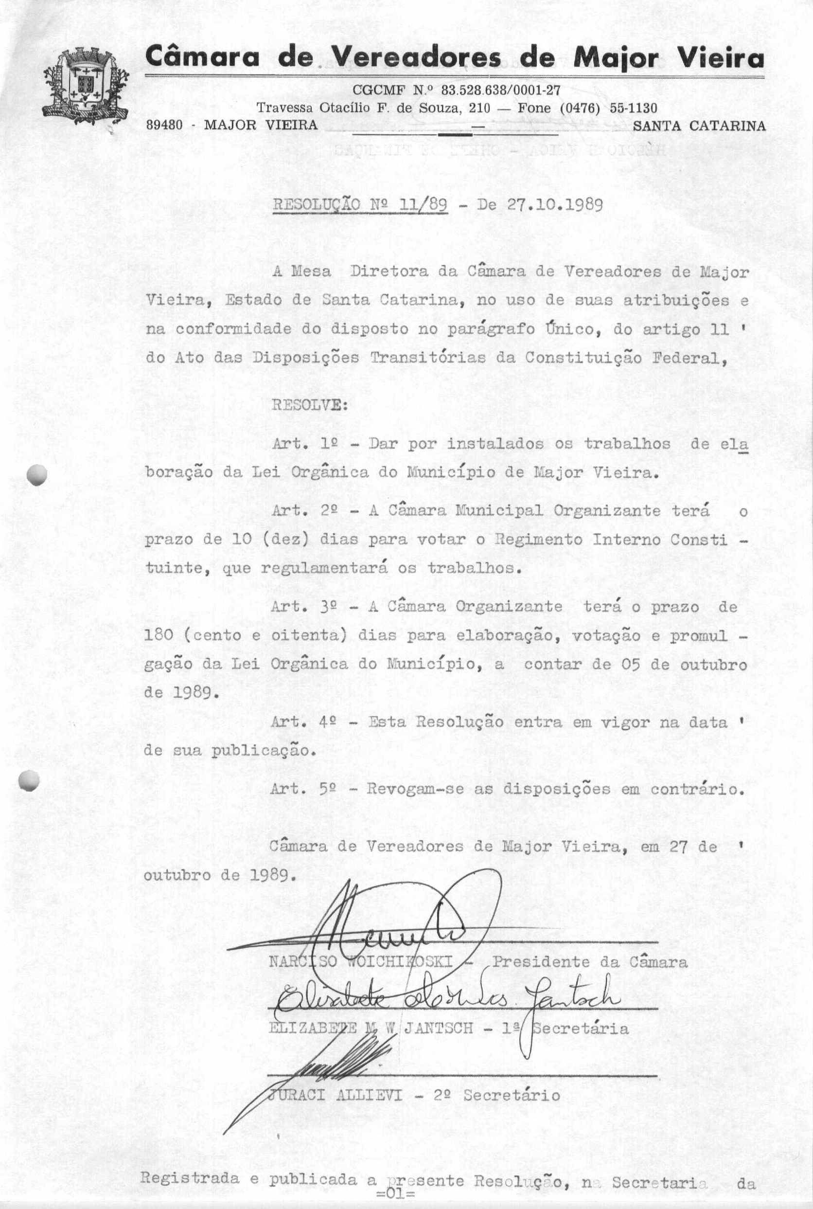 RES 11/1989 - RESOLUÇÃO PROMULGADA
