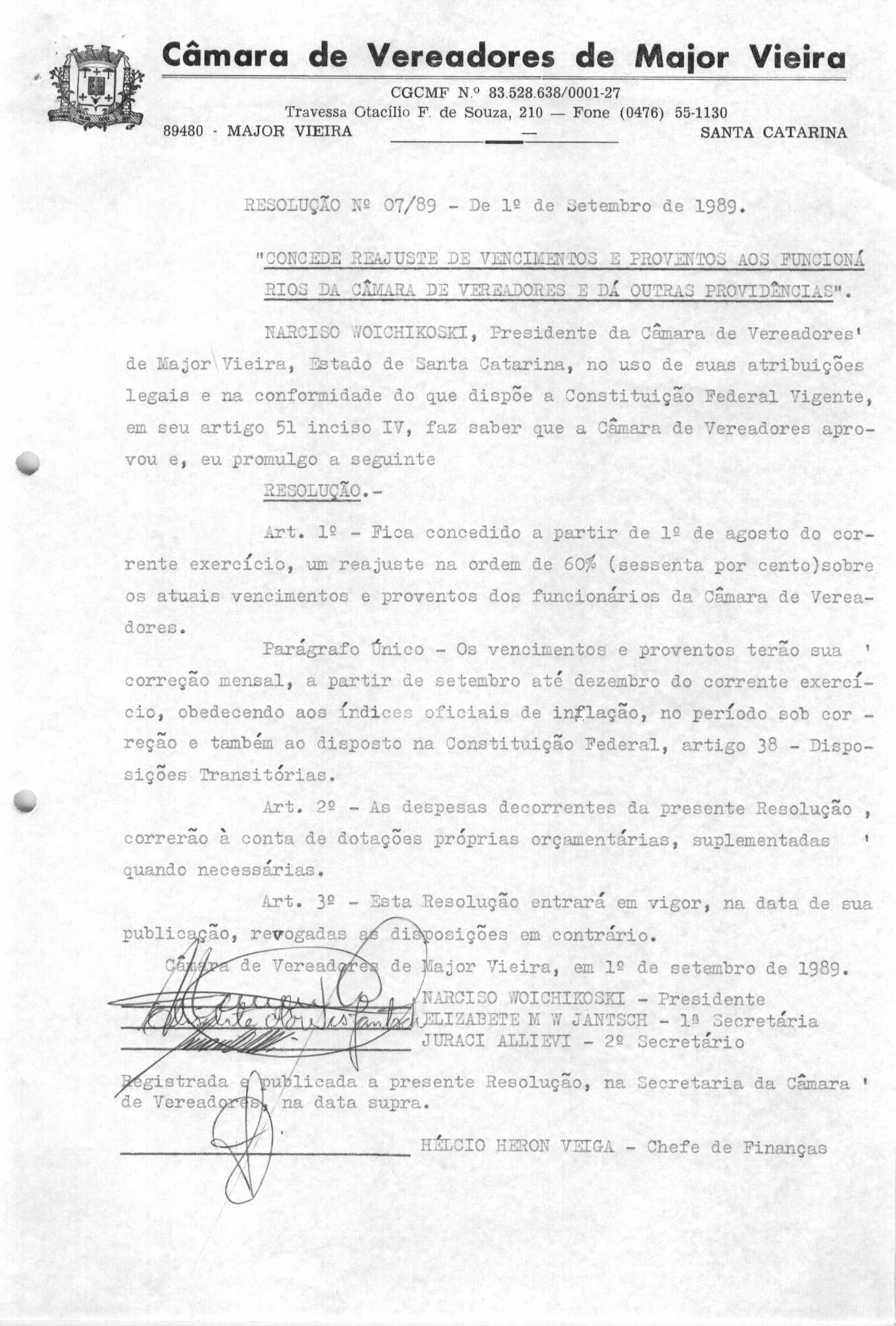 RES 7/1989 - RESOLUÇÃO PROMULGADA