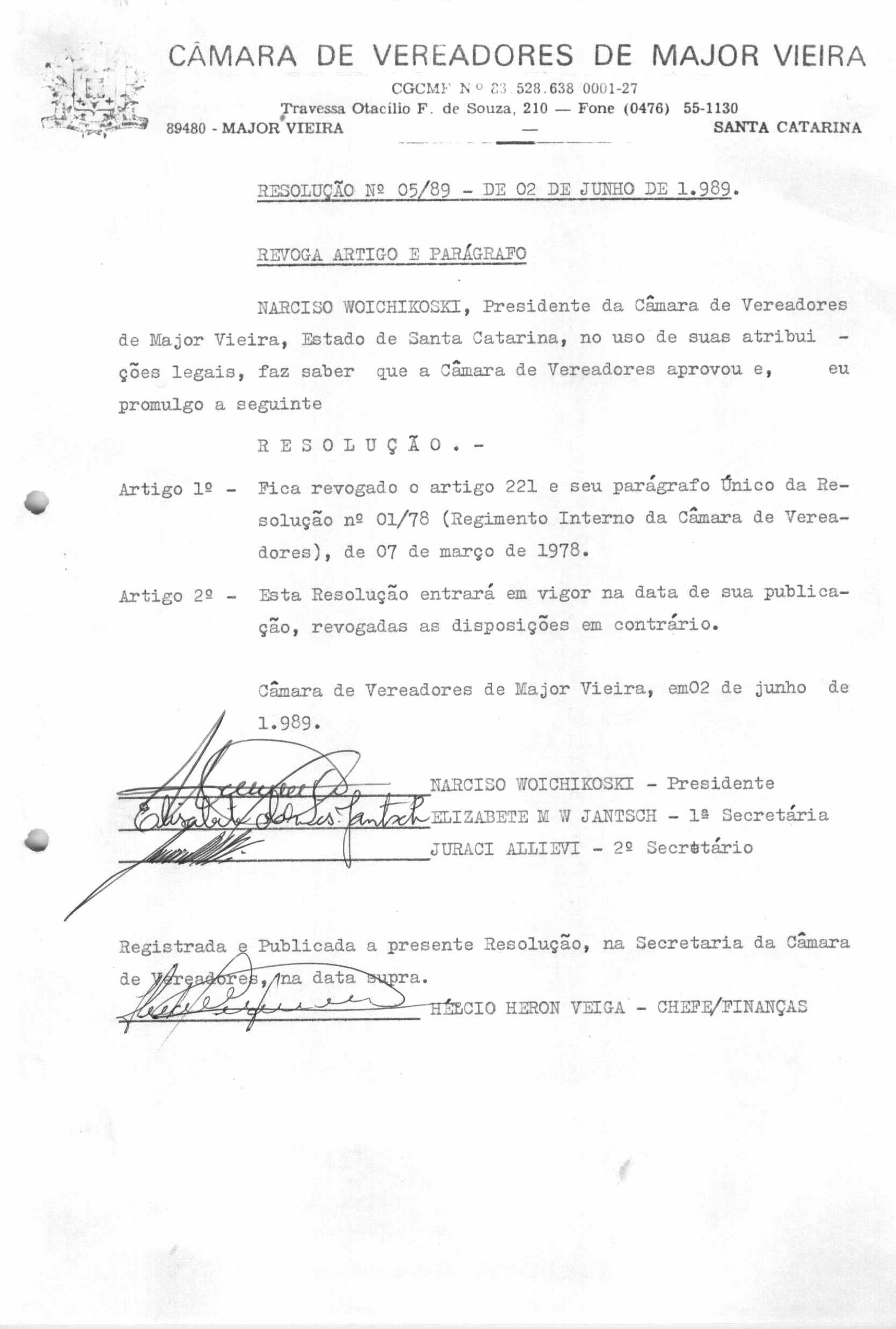 RES 5/1989 - RESOLUÇÃO PROMULGADA