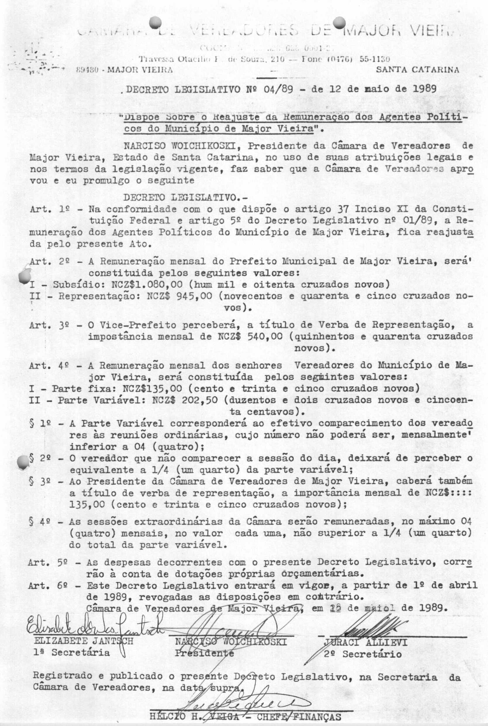 Ementa: DETERMINA OS VALORES A SEREM PAGOS AOS AGENTES POLÍTICOS, NO MÊS DE NOVEMBRO DE 1989, EM RAZÃO DO EXERCÍCIO DO MANDATO.