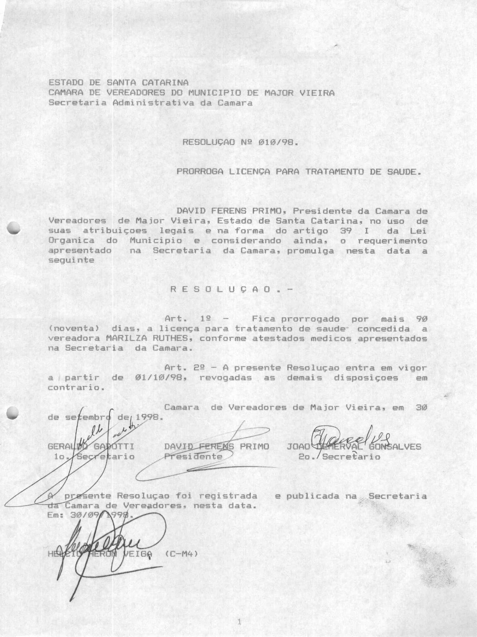 RES 10/1998 - RESOLUÇÃO PROMULGADA