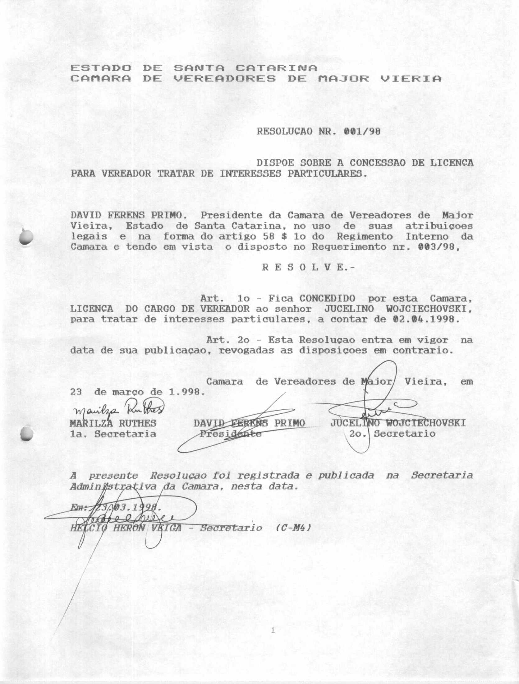 RES 1/1998 - RESOLUÇÃO PROMULGADA