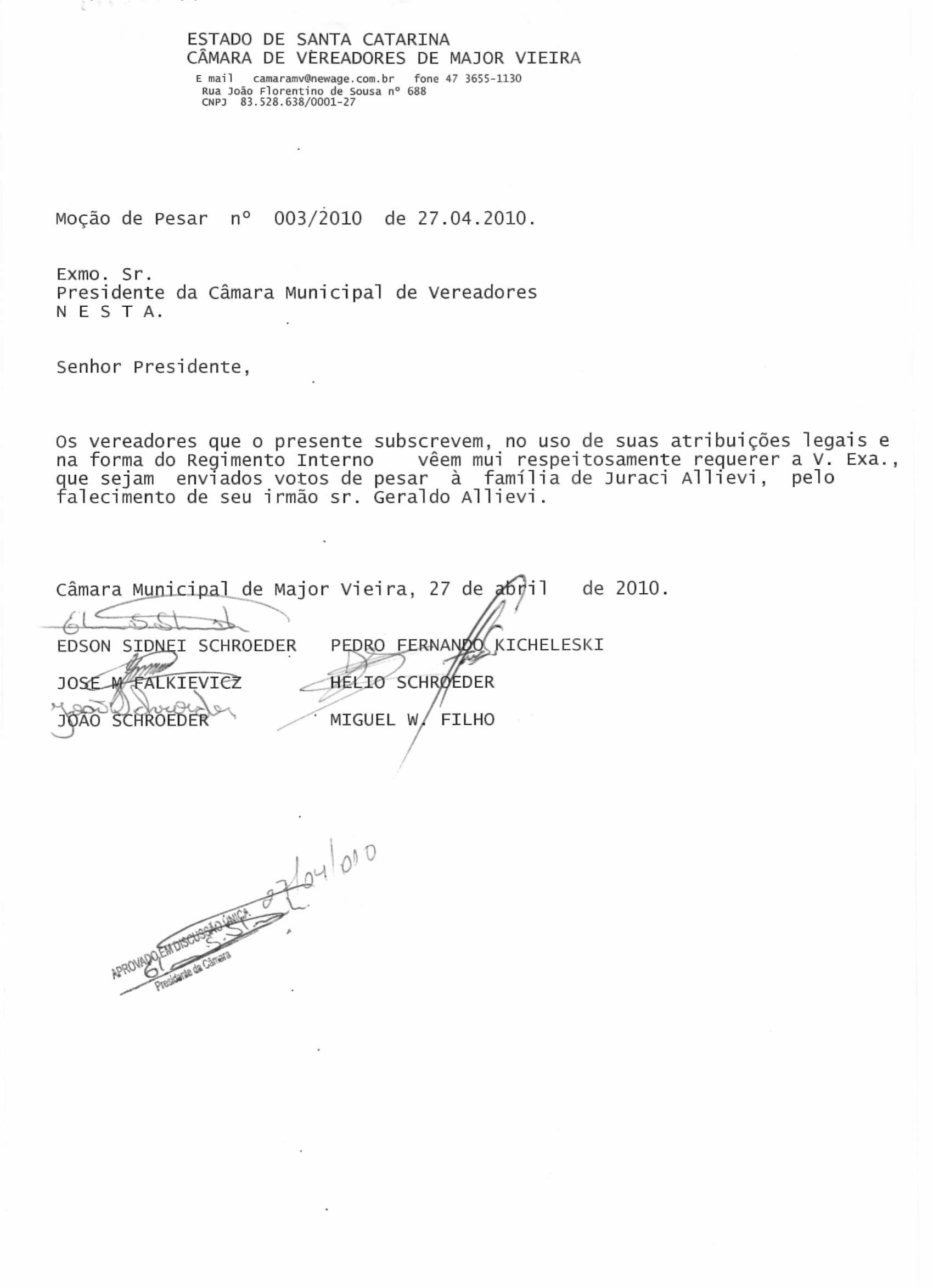 Ementa: MOÇÃO DE PESAR PELO FALECIMENTO DE MIGUEL MAROM BECIL, OCORRIDO NO DIA 07.06.2010.