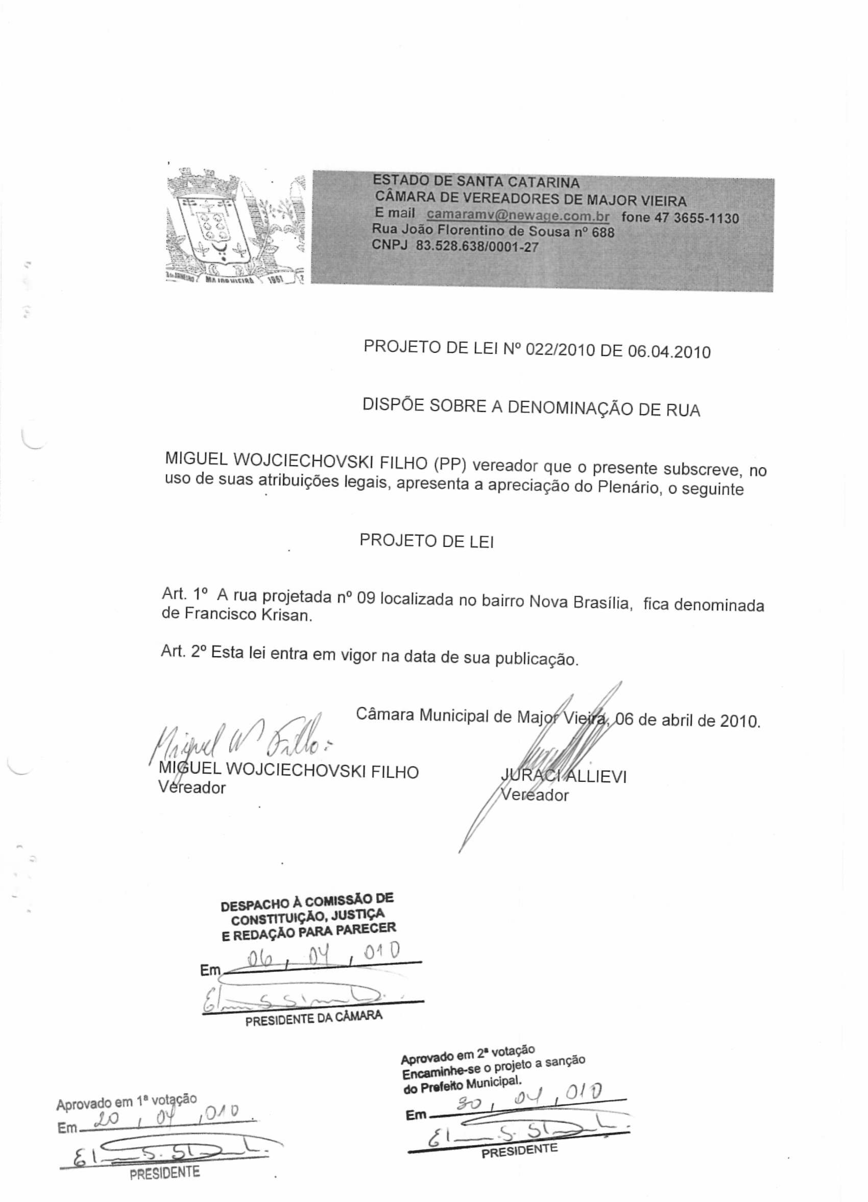 PLO 22/2010 - Projeto de Lei Ordinária
