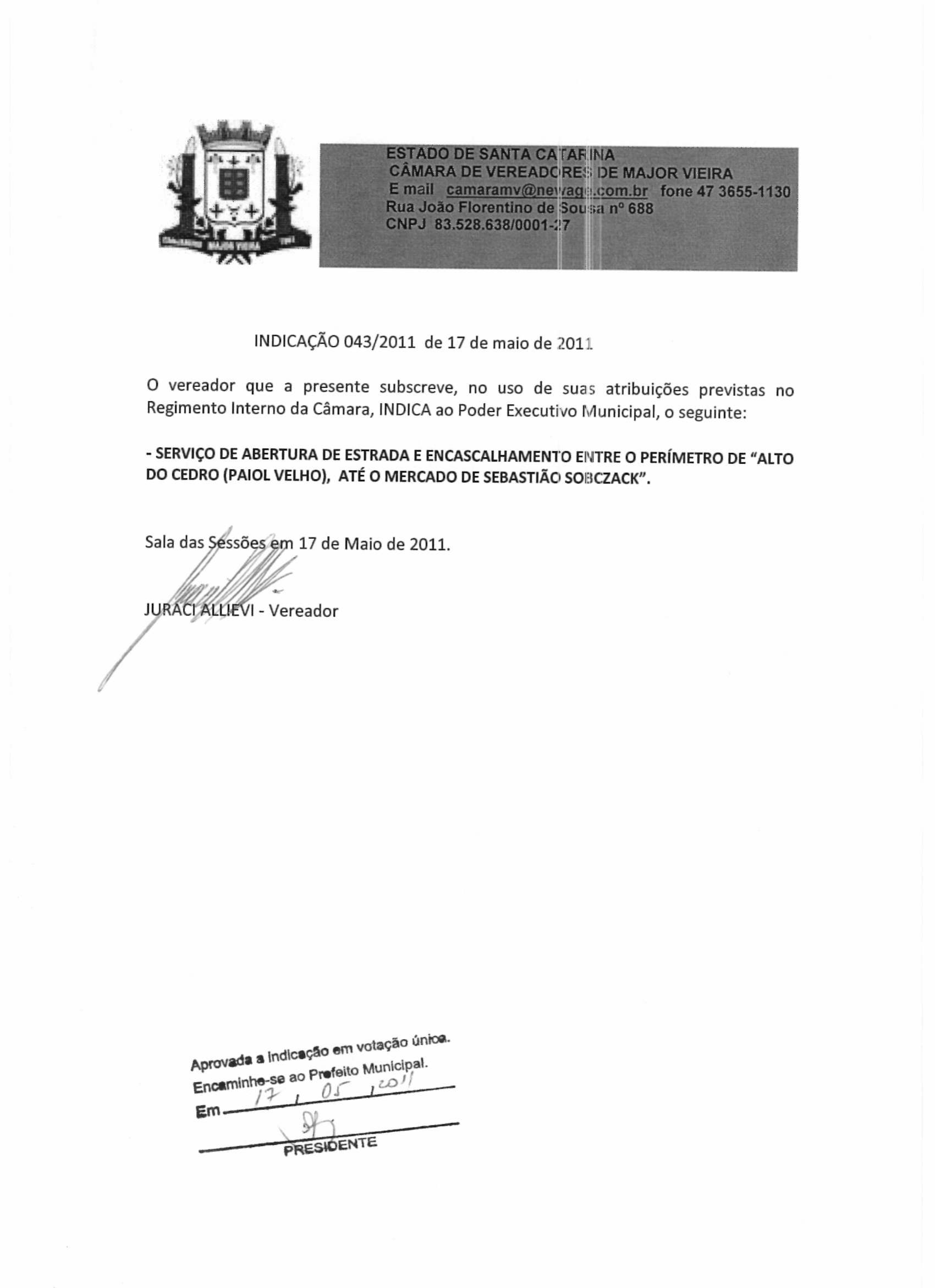 IND 43/2011 - Indicação