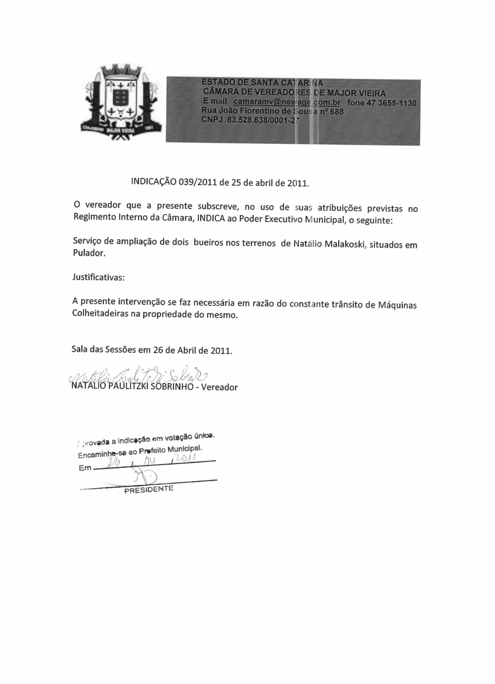 IND 39/2011 - Indicação