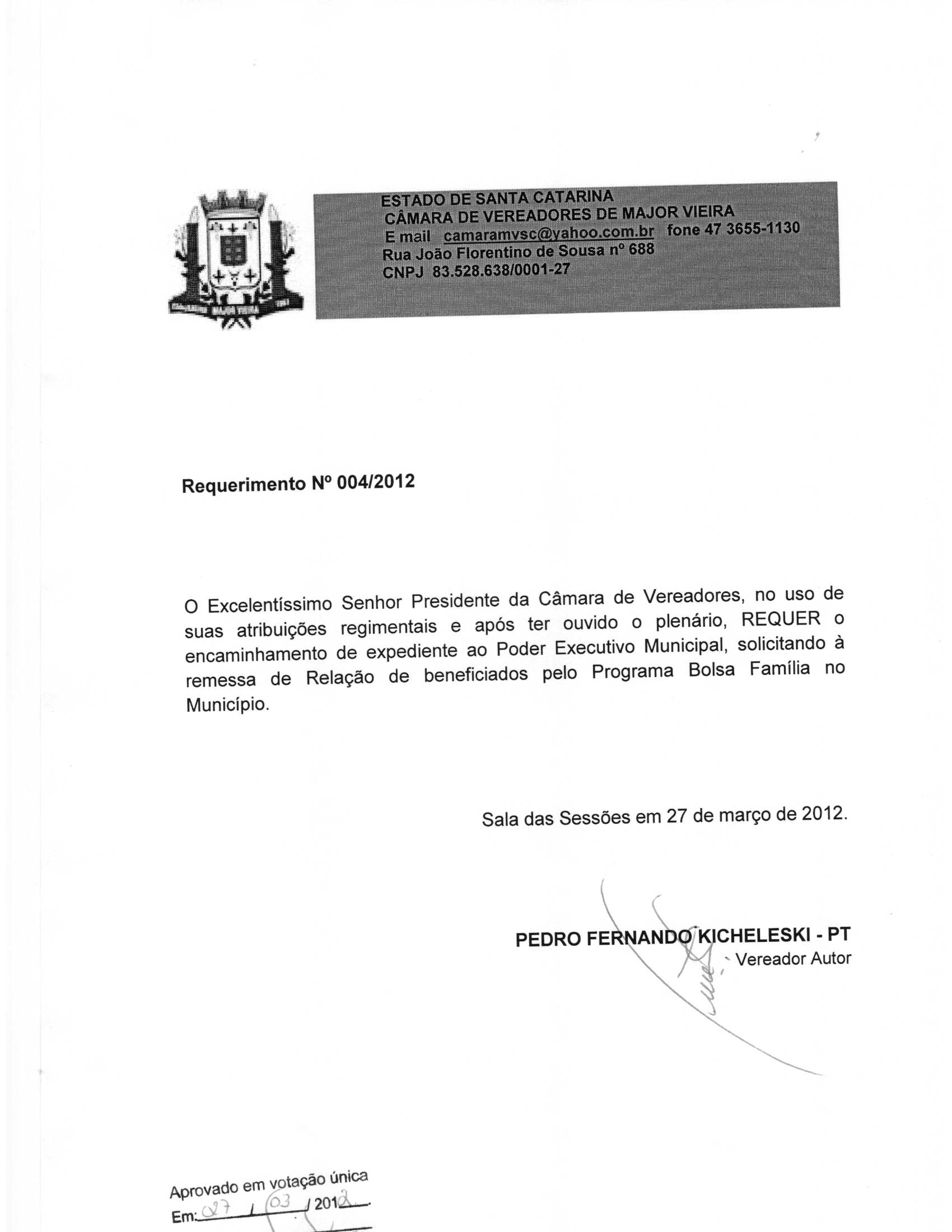 Ementa: REQUER O ENCAMINHAMENTO DE EXPEDIENTE AO PODER EXECUTIVO MUNICIPAL, SOLICITANDO O ENCAMINHAMENTO À CÂMARA, DE RELAÇÃO DE BENEFICIADOS PELO PROGRAMA BOLSA FAMÍLIA.